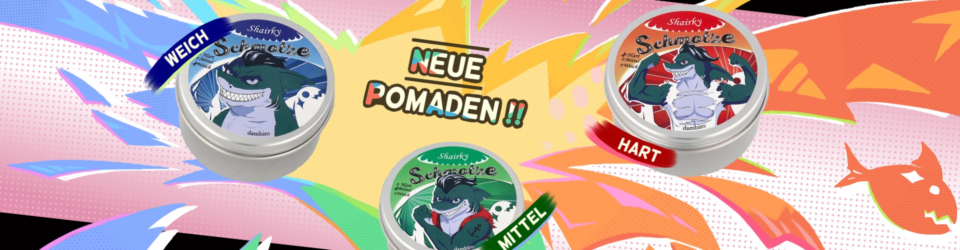 Jung, frech und voller Power: Shairky bringt frischen Wind ins Haarstyling. Drei Varianten, drei Härtegrade von locker bis bombenfest. Mit dem coolen Hai-Maskottchen und top Performance ist Shairky mehr als nur Haarpomade, sondern ein Statement für deinen Style. Exklusiv bei uns erhältlich. Sichere dir jetzt deine Portion Schmotze für den perfekten Look!